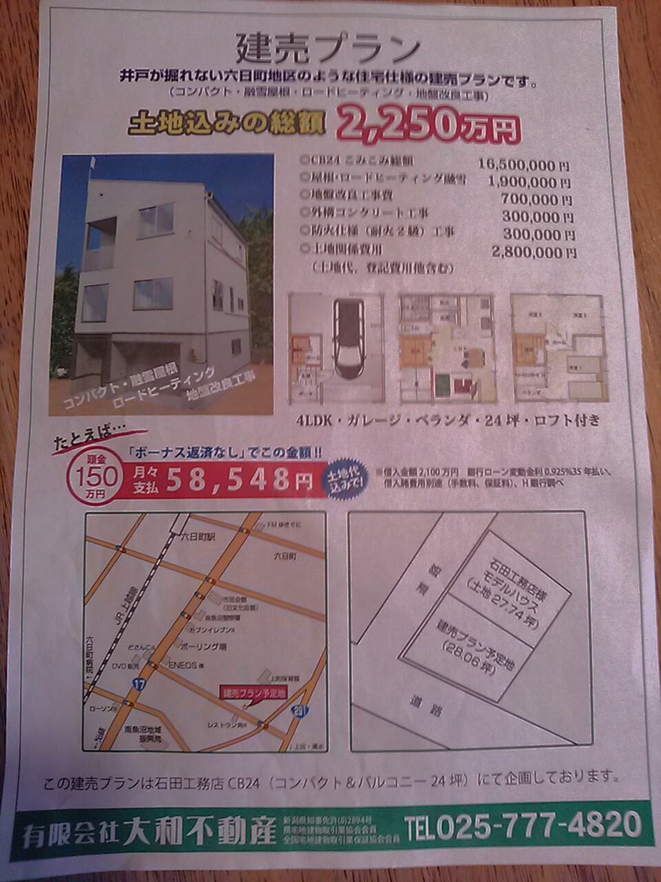 ↓は配布用チラシですが、六日町地区にご興味のあるお客様はご一報下さいませ。