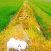 ・・・昨日の魚沼市の豪雨被害が心配でした。 今朝も30分以上の散歩ができました。農道幅全面に水溜りあり。ケアが渡る。足跡が付く。なんて可愛いんだ。成長していく稲ちゃんも可愛く見えた。。。