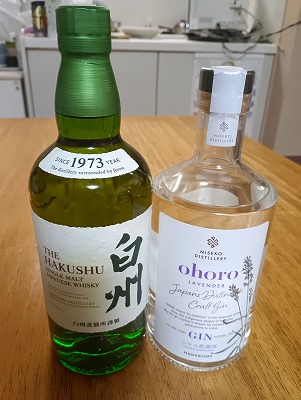 。。。気分が良いので、頂き物の高級酒:白州、ニセコGINを吞むことにしよう!!