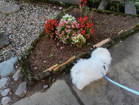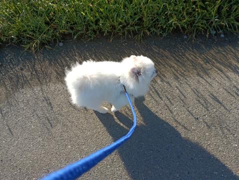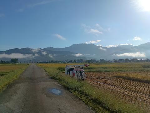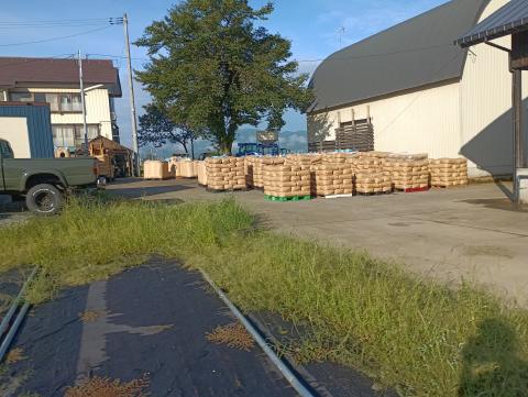 。。。ケアと散歩、専業農家の屋外に出荷用のお米を沢山運んでいました