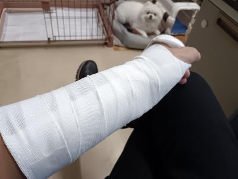 大和病院に行ってきました。レントゲンを撮るのに指輪が食い込んでやっと外しました。骨に異常はありませんでした。傷も無いので酔って転んだというより、肩から腕の圧迫から神経がやられた可能性大。ボクは左側を下にして寝ており、腕を体に挟んで痺れて目が覚めることがよくあります。。。手首を固定されましたいずれにしても精密検査の機械が無いとのことで、12月1日に基幹病院受診で原因究明します。なので、三日間休肝命令が出ました。明日はノンアル会です💦