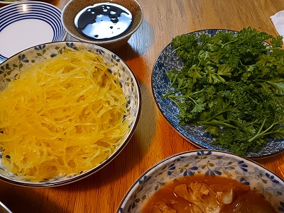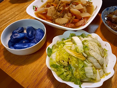 今週はずっと家にいておかずを買って夕飯の用意。。。でも今日はいつもの「蒸し肉野菜きのこ、、ぽんゴマ」と思ったけどポン酢が無かった。。。なので、我が家の大根おろしと焼き肉のタレで食べました。。。結局、こっちの方が美味しかったかも。。。家内は我が家の野菜で、朝に料理しているんです!