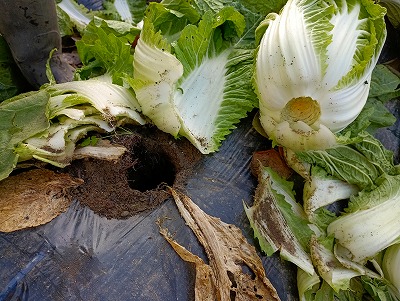 。。。家内が畑で呼んだ。白菜収穫でモグラくん?ちゃん?が根っこから食べました
