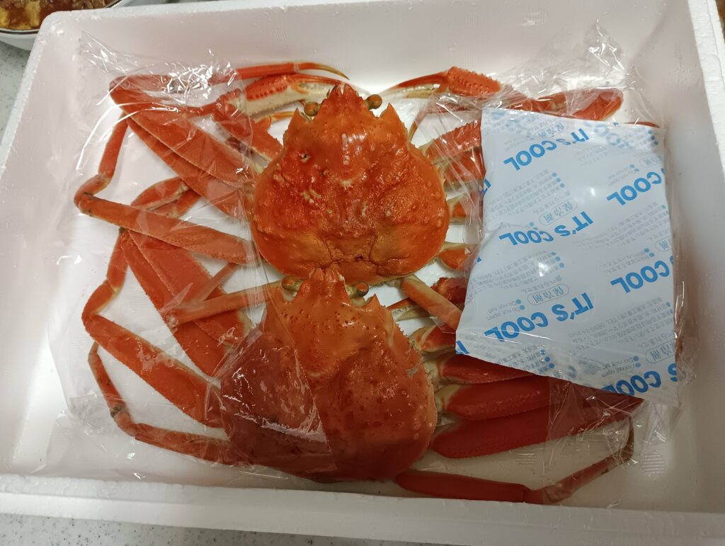 北海道の親戚からドデカいホッケ、アパートオーナーさんからのカニ