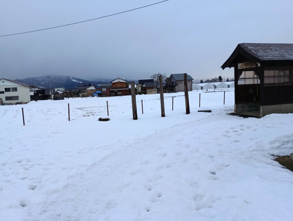 夕方、村の鎮守様に二年参りに来られる方々のために、区長、氏子代表、副区長(ボク)で道踏みをしました。。。何件お参りに来られんでしょうか?💦