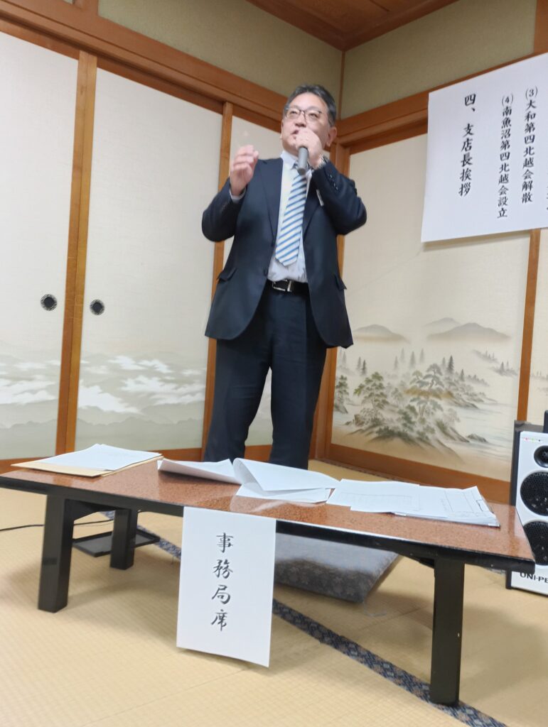 ・・・大崎「八百真」さんでありました。エリア制により六日町支店が中核となり、大和・塩沢支店は衛星店として窓口業務中心のみで、大和会は解散し「南魚沼第四北越会」となります。懇親会では直近大和支店長6名が出席して頂き、ボクとの話は旅行の武勇伝ばかりでしたとにかく楽しかったです!。。。二次会は「レオン」さん。歌を唄い気分良く帰りました!