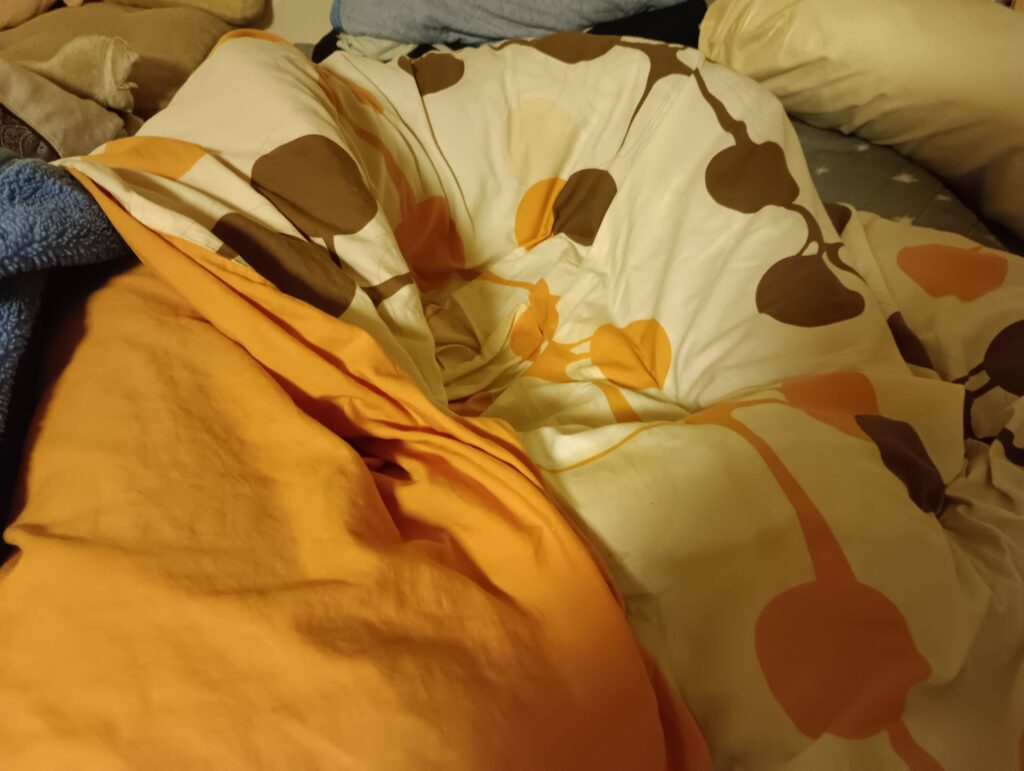 ・・・二晩実家に泊まりました。帰宅したら家内があなたの布団を見てごらんって言いました。。。昨夜9歳になりましたから、ケアは今夜もお父さんがいないことを察し、ボクの布団で寝床を作ったようです。初めて今朝家内が起きたらケアがいないと焦った。するとすっぽりと、その寝床で寝ていた。。。今ほど大人の顔でボクを見て、そっとお尻をつけた。。。涙が出た