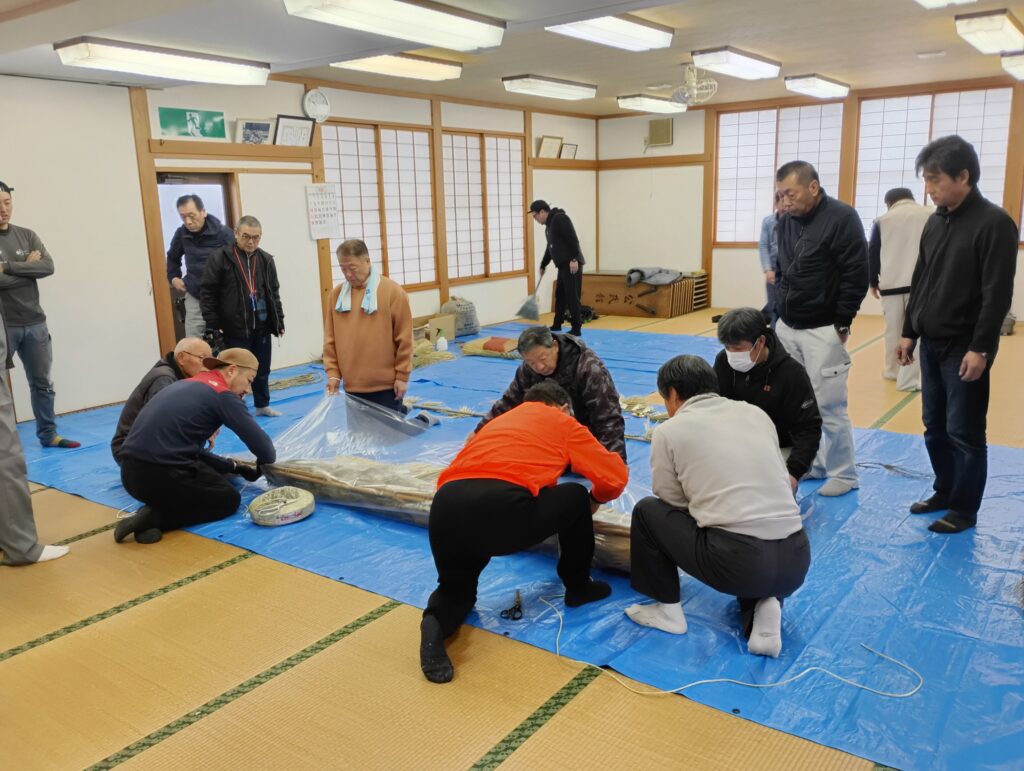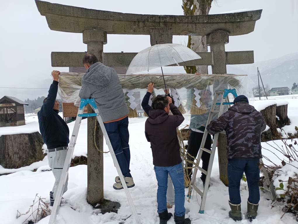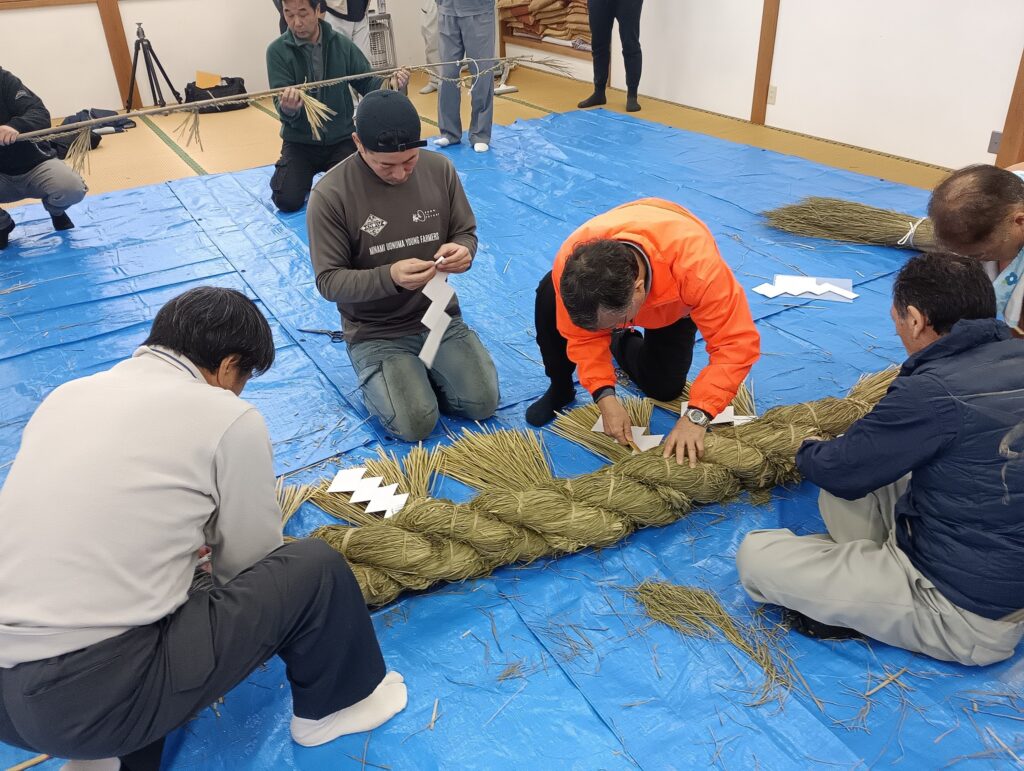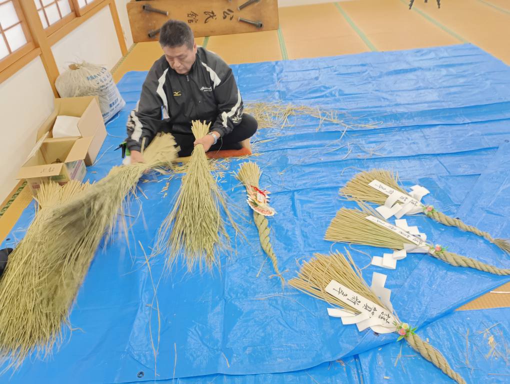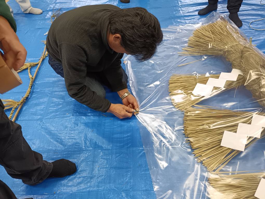 昨日は「集会所の掃除としめ縄綯い」をおこないました!。。。ボクんちの地域では一村一神社であり、鎮守様に飾る大しめ縄、棒締め縄を区長、氏子ら役員で作ります。。。といっても先輩がいないとできませんが。。。ボクは手首の問題で役に立たず、フリをしている画像。。。南魚沼町内でこのような大しめ縄を作っている所はあるのでしょうか?。。。慰労会を盛大にやって、吞み足りず、もつ鍋を作ってくれた巻のダイヤモンド警備保障社で二次会。。。酔った~!