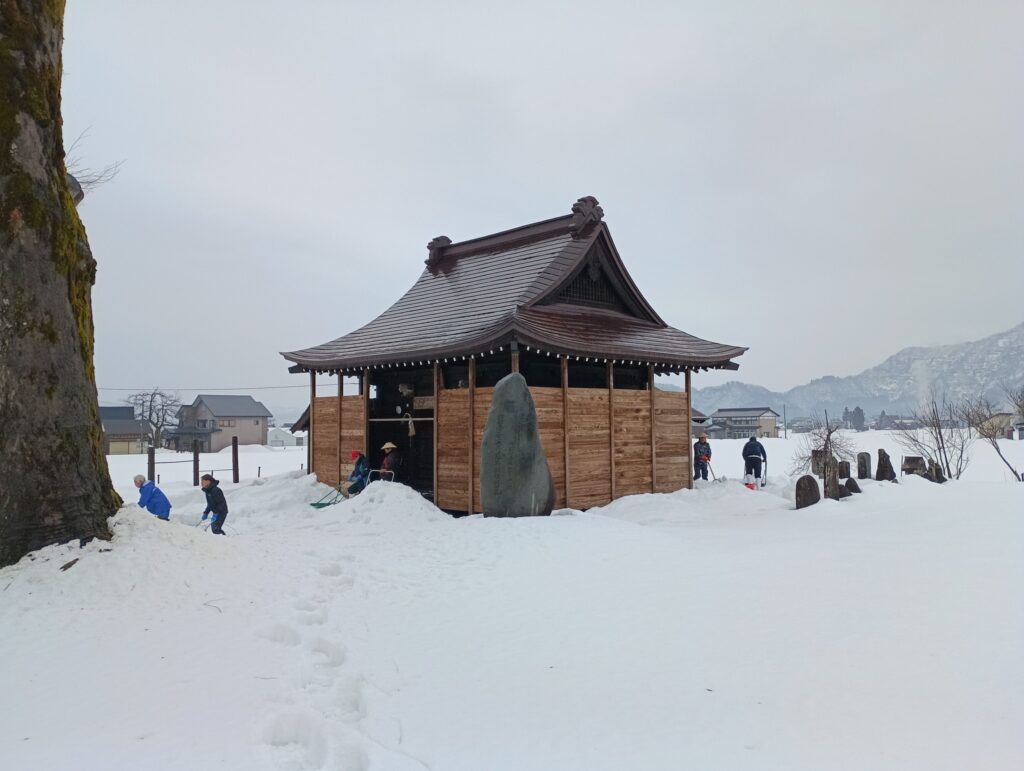 ・・・実家に泊まって、今朝は村の役員と氏子総代で鎮守様の雪掘り。。。みんな時間前に始めていて10分で完了した💦