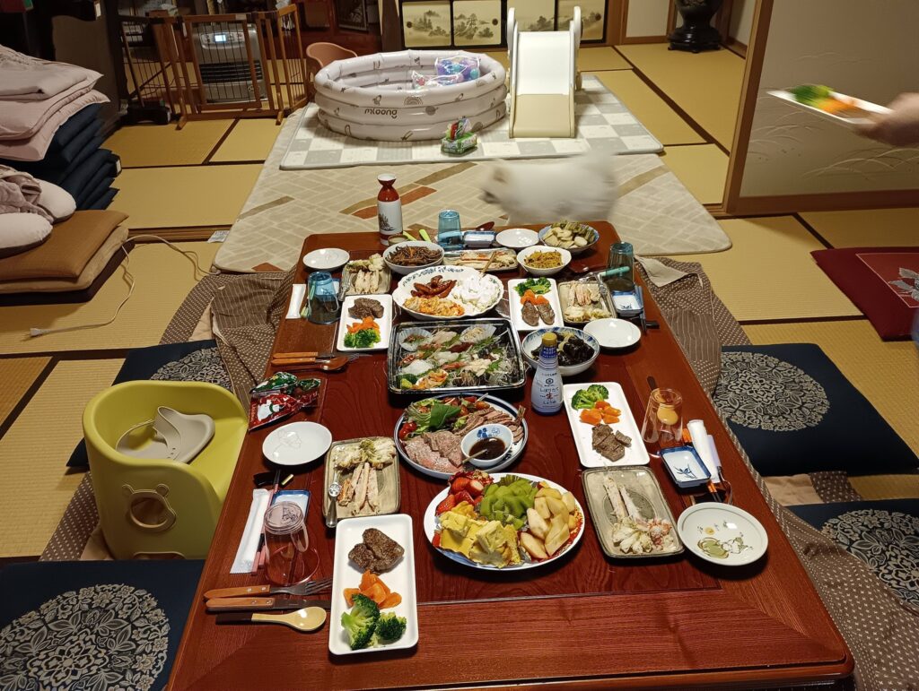 昨日の夕方、もうすぐ10ヶ月になる孫を連れて!ジジ、ババア、おっと間違いババにすぐになついて、寝る子は育つって感じ!可愛すぎて食べてしまいそう。宴会では、「清鱗」さんのお刺身、「キッチン片山」さんの村上牛を中心に、カニ、ローストビーフ、天使の海老、ウインナー、ウイスキー、焼酎、全て頂き物。。。楽しい宴で、寅爺ちゃんは酔って腰が抜けました💦今日は義姉、義妹たちが集まり大宴会です!