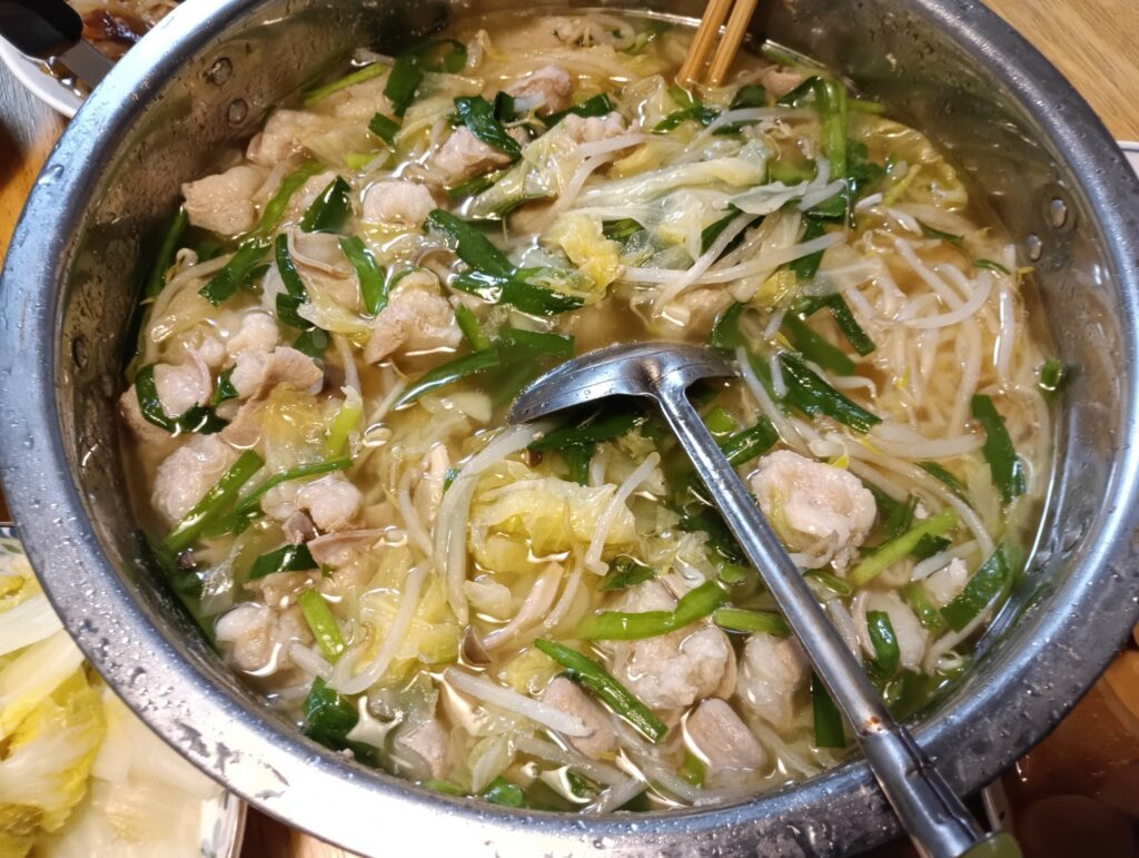 ボクはいつもの「ポンゴマ蒸し肉野菜キノコ」。家内はモツ鍋。。。どちらが美味かったか?。。。モツ鍋の勝利!