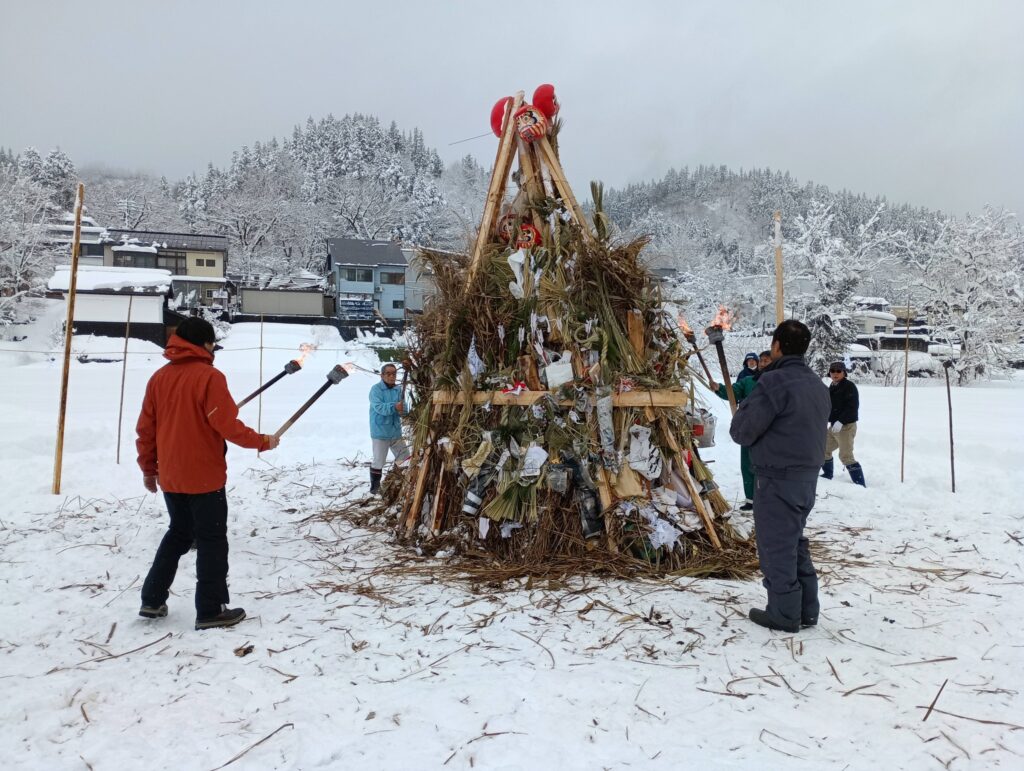 ・・・が昨日ありました(全集落が対象ではありませんが、注連縄等自由持ち込み)浦佐地域づくり協議会の役員として11年目のお手伝い。何事も準備、後片付けは一苦労ですね。浦佐白山神社の宮司様からお祓いをして頂くと重みを増します。点火前からお神酒をぐいぐいと呑む縁起物のスルメは価格高騰のため3分の1に切りました。慰労会ではハイボールをご所望。。。いい感じに酔って、石田君宅でごちそうになり、更に上村さん宅でごちそうになり、ダウンしそうになったので、妹から迎えに来てもらい実家でつぶれました💦