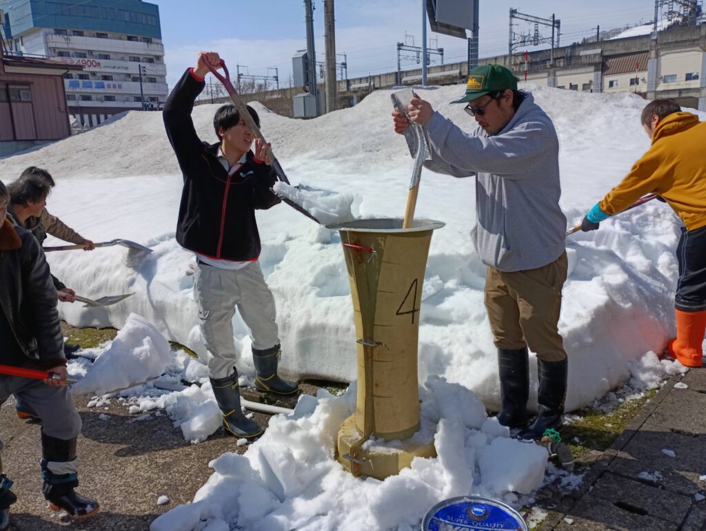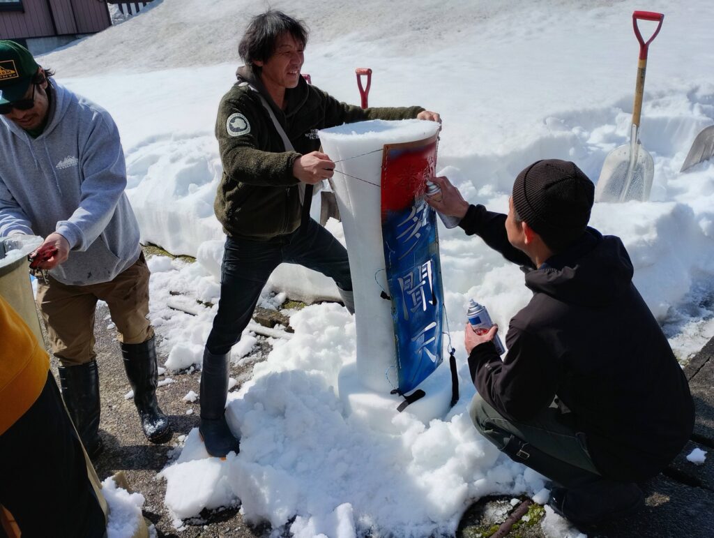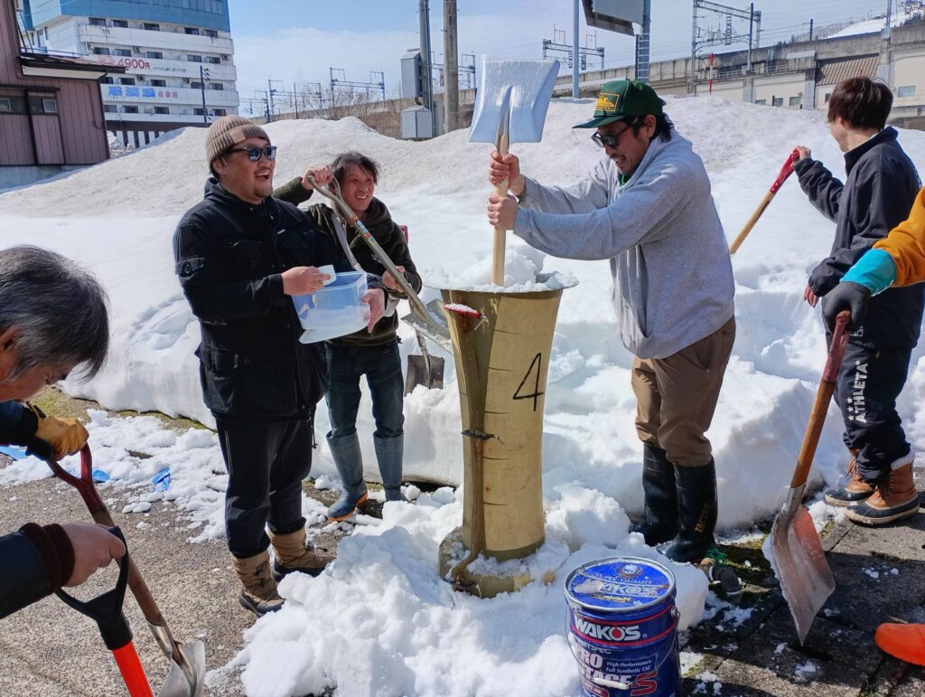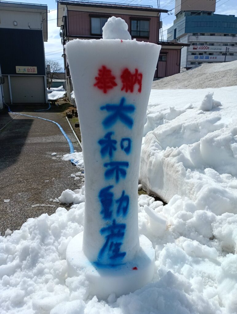町内の青年会の皆さんが雪で大ローソクを作ってくれました。駅東は祭りの雰囲気がないので、ありがたいです。。。一番若手が全てのローソクに乗り、ピョンピョンと固める。見てるだけで疲れが分かる