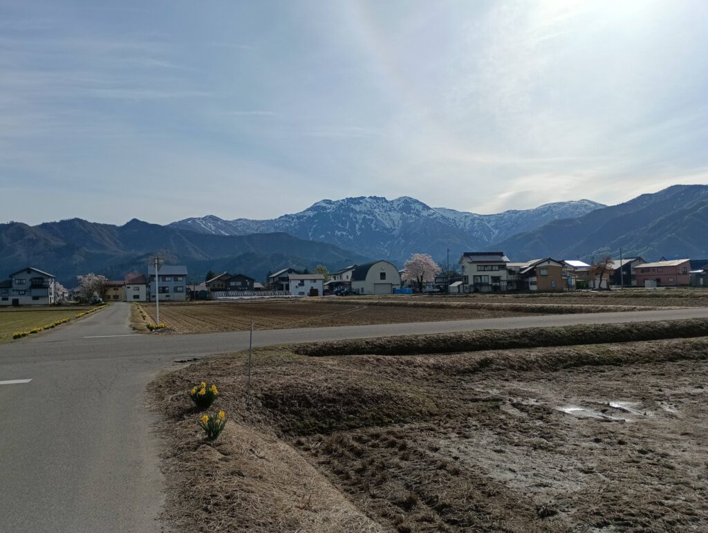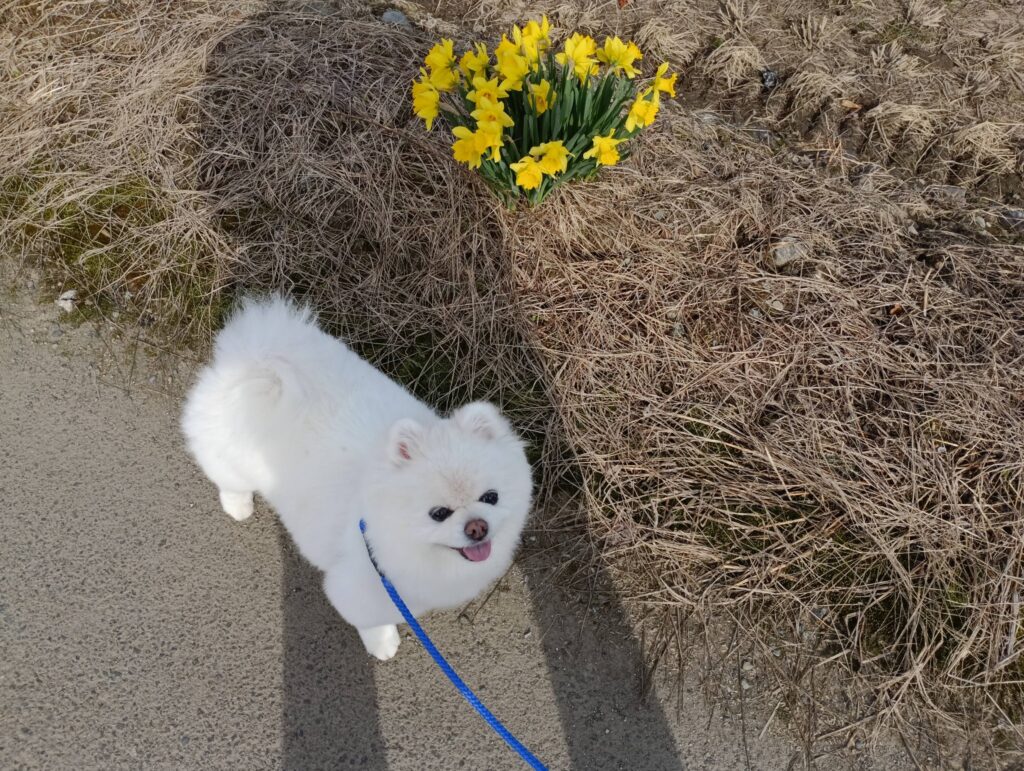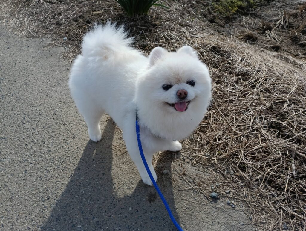 1枚目の画像、昨夕、玄関を開けると綺麗に見える八海山この角度がとても好きです!。。。ケアと朝散歩。どの角度も可愛いです!
