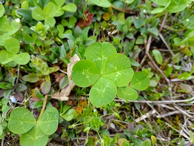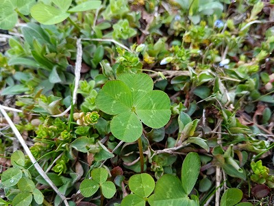 買い物から帰るとケアと家内の散歩が見えた。急いで交代。。。初めてのルートを歩いていると今年初の四葉のクローバーを二つ見つけた!。。。幸運の兆しか!!