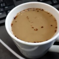 久しぶりにインスタントコーヒー。。。「ポットのお湯がぬるいぞ!コンセント入れたばかりか?」。。。「あのさ~、牛乳半分も入れれば、そりゃぬるいって。あなたマジで言ってんの!?」。。。